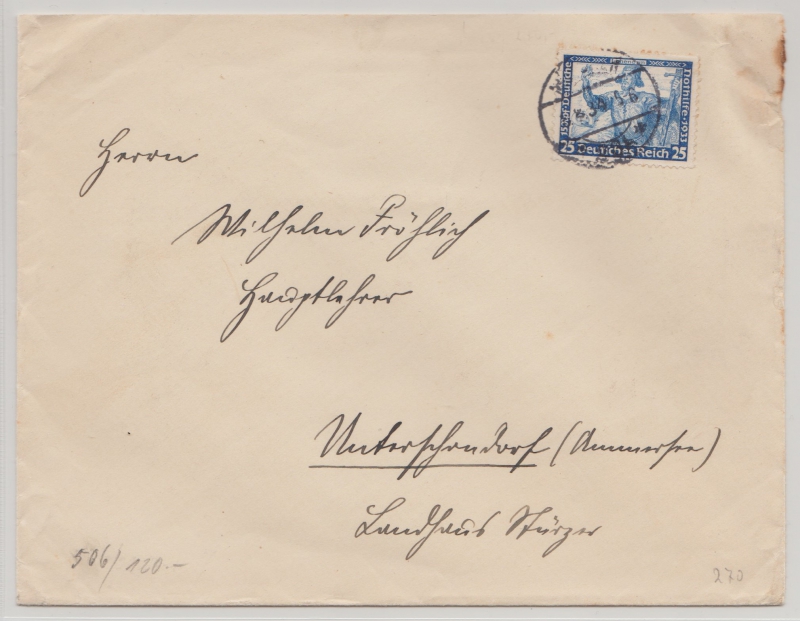 DR, 1934, Mi.- Nr.: 506 als EF auf Fernbrief (?) von München nach Unter... (?)