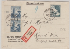DR, 1939, 676 + 682 (2x vom SR) als MiF auf Einschreiben- Fernbrief von Hannover nach Kassel