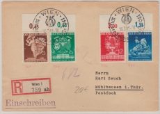 DR, 1941, 768- 771 (je vom OR) als Satzbrief- MiF auf Einschreiben- Fernbrief von Wien nach Mülhausen