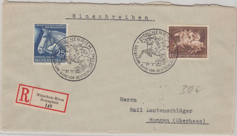DR, 1941, 779 + 780 als MiF auf Einschreiben- Fernbrief von München nach Hungen, mit Sonderstempel