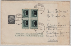 III. Reich, 1937, Mi.- Nr.: Bl. 7 u.a. in MiF auf Auslandsbrief von FF/O nach Rifugio Icaro (It.)