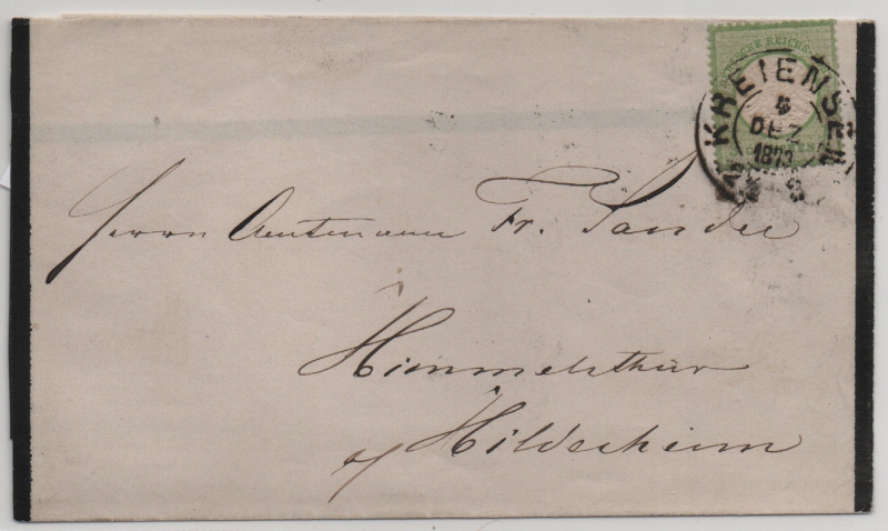 DR, Brustschilder, 1873, Mi.- Nr.: 17 als EF auf DS- Fernbrief von Kreiensen (AD- Braunschweig-Stempel) nach Hildesheim