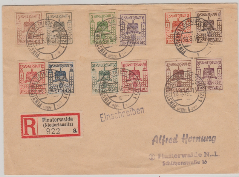 Lokalausgaben, D.- OST, 1946, Finsterwalde, Mi.- Nr. 1- 12 (kpl. Satz.!) in MiF auf E.- Ortsbrief innerhalb von Finsternwalde