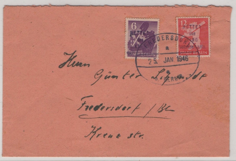 Lokalausgaben, D.- OST, 1946, Fredersdorf, Mi.- Nrn. 69 + 70, gestempelt, Ortsbrief, innerhalb von Fredersdorf