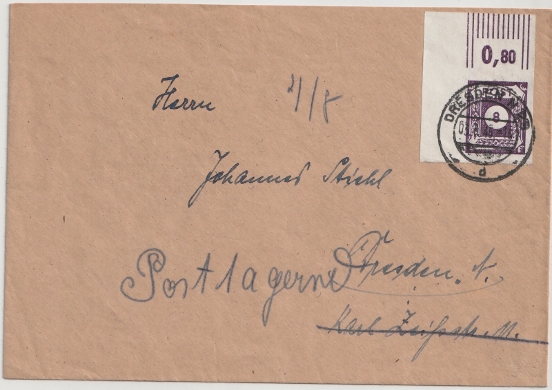 Ost- Sachsen, Mi.- Nr.: 44 A c (vom ER lo!) als EF auf Ortsbrief innerhalb Dresden´s, tiefstgeprüft Kunz BPP!