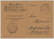 Kontrollrat / West, Not-GS, 6 Pfg. als Postkarte von Flensburg- Mürwik nach Weidenau gelaufen