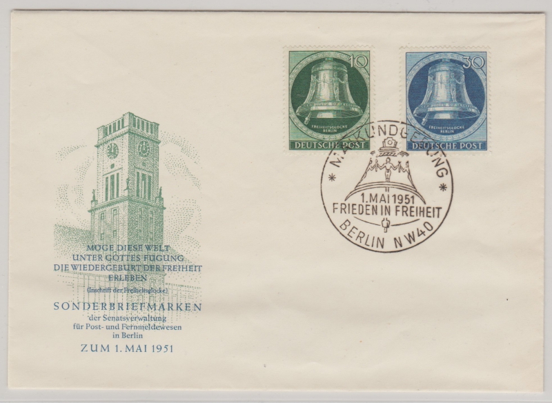 Berlin, 1951, Mi.- Nrn.: 76 + 78 auf FDC, nicht gelaufen