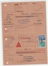 Berlin, 1958, Mi.- Nr.: 142 + 149 als MiF auf Fern- Nachnahme von Berlin nach Wilhelmshaven und zurück