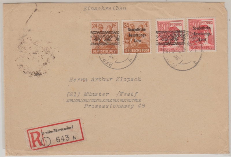 Berlin / SBZ / Bizone, 1949, SBZ - Bizone in MiF auf Einschreiben- Fernbrief von West- Berlin nach Münster