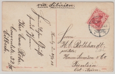 DAP China / Incomming Mail, DR 1908, Mi.- Nr.: 86 als EF auf Bild- Grußpostkarte von Hamburg nach Tientsin