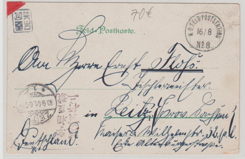 Dt. Auslandspostämter, China, 1901, Boxeraufstand, Feldpost- Postkarte vom 16.8.01, mit Stempel Feldpostation No 8