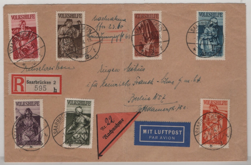 Saargebiet, 1934, Mi.- Nrn.: 171- 177, in Satzbrief - MiF, als R.- Lupo.- NN- Fernbrief von Saarbrücken nach Berlin
