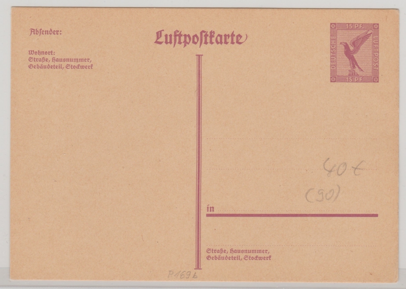 15 Pfg. "Flugpost", graulila, Lupo- Karten- GS, (Mi.- Nr.: P169b), ungebraucht