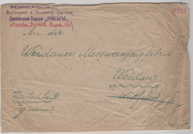UDSSR, 1922, 2500 R.- Überdruckwert (4x, rs.) als MeF auf Auslandsbrief von Moskau nach Werdau (D.)