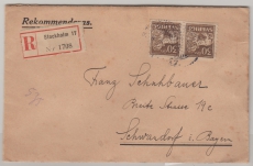 Schweden, 1923, 30 Öre (2x) als MeF auf Auslands- Einschreiben von Stockholm nach Schwandorf (D)