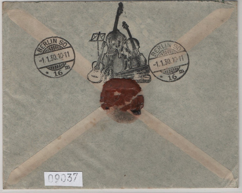 Türkei, 1930, 28,5 Kurus MiF auf R.- Auslandsbrief von Constantinopel nach Berlin. Nette Werbung Rs.: Musikinstrumente