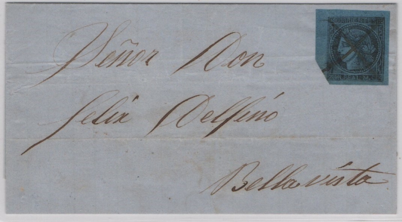 Argentinen, Corrientes, 1856, Mi.- Nr.: 1 als EF auf Fernbrief von Emperodo nach Bella Vista! FA Brettl BPP:e+e! RR!