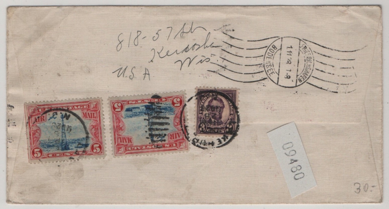 Rs. mit Transitstempel Friedrichshafen, vs. mit Flugbestätigungsstempel, Bedarfserhaltung