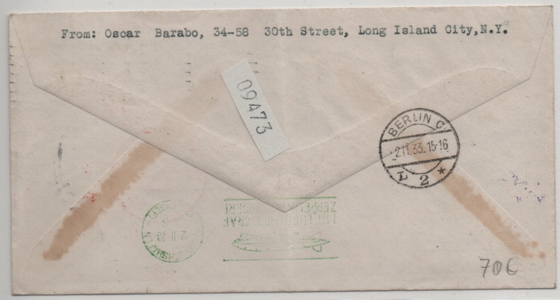 USA, 1933, 55 Ct. MiF auf Zeppelin- Auslandsbrief ("Century of Progress") von Akron via Friedrichshafen nach Berlin